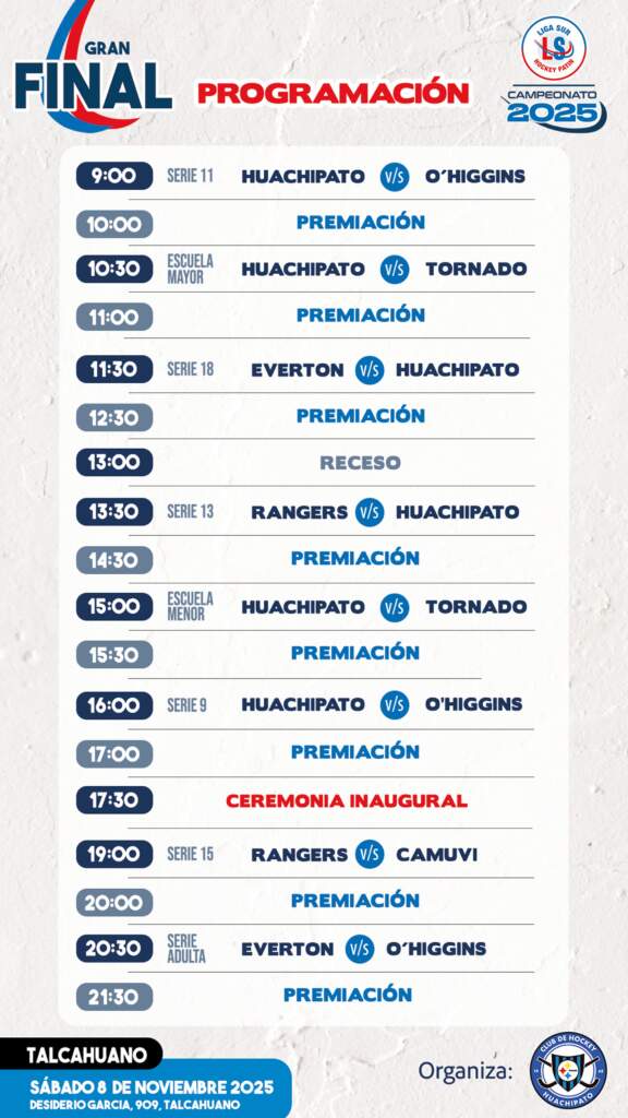 El Club Huachipato será el anfitrión de esta gran final, que reunirá a equipos de distintas regiones del centro-sur del país. Desde Viña del Mar hasta Chillán, pasando por Talca y Rancagua, la Liga Sur vuelve a mostrar su carácter integrador y su compromiso con el crecimiento del deporte en comunidad.